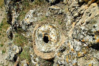 Acima, parte de dois aquedutos (tubo) que traziam água do sul para Laodiceia Essa divisão foi feita de blocos de pedras individuais, selado colado com emplastro e azeite de oliva.